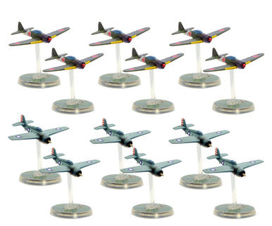 12 x Warlord Resin aircraft (6 x Mitsubishi A6-M2 Zero & 6 x Grumman F4F Wildcat)