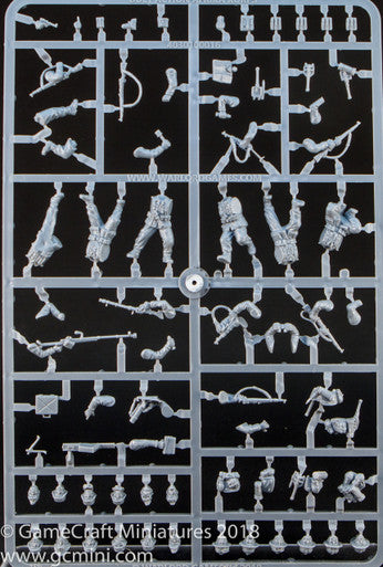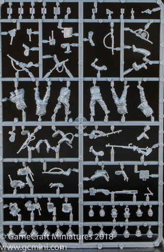 Enough plastic components to make 30 Deutsches Afrika Korps miniatures. Includes a host of options to allow for different weapon configurations and command models.