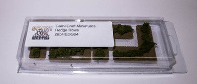 Ready to use hedgerows. Base is made of .060" (1.5mm) acrylic for durability, base is covered in ground covering and then hedges are applied.