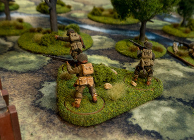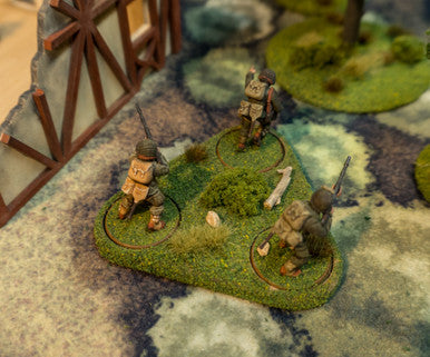 This tray is much like the BATray3 except that it is optimized for use with Bolt Action where figures in a unit are required to be within 1" of each other but being too close together makes them vulnerable to HE fire. The base locations on these trays are just within the required 1" spacing and allow for the most separation between bases allowed by the rules.
